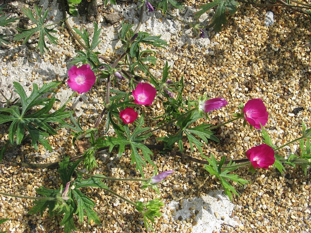 Callirhoe involucrata to rzadko spotykana roślina wieloletnia z rodziny malwowatych. To bardzo efektowna bylina o pięknie wybarwionych kwiatach, kwitnąca bardzo obficie przez cały sezon wegetacyjny od marca do sierpnia. Ma wyprostowany lub rozłożysty pokrój. Dorasta do około 30 cm wysokości i 90 cm szerokości, świetnie nadaje się na skalniaki, murki, zbocza, do koszy wiszących. Liście mięsiste i lśniące, pokryte są drobnymi włoskami, kwiaty mają pięć satynowych płatków w kolorze głębokiej czerwieni i różu o średnicy 2,5cm. Każdy płatek ma białą plamkę u podstawy i liczne, bladożółte pręciki. Kwiaty, które są umieszczone na długich, łodygach, zamykają się wieczorem, otwierają rano.